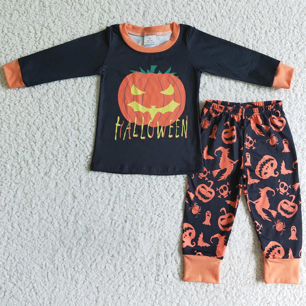 Boutique Halloween Boys Pajamas Pumpkin Print Sleepwear BLP0014