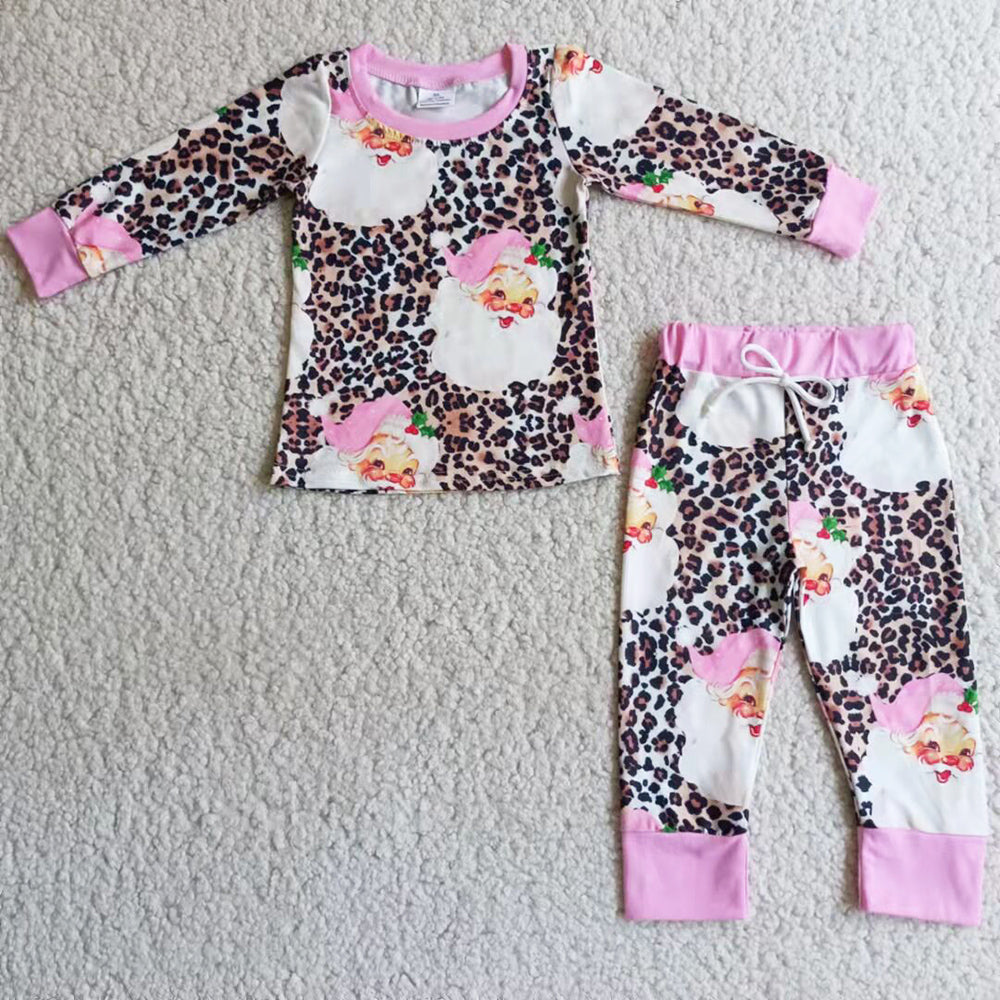 Christmas Baby Girl Pajamas Set Santa Claus Leopard Print Fashion Toddler Girl Pajamas 6 A4-26
