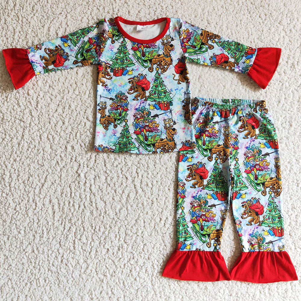 Christmas Kids Boutique Pajamas Girls Sleepwear Deer Print Cue Baby Girl Pajamas Set GLP0242