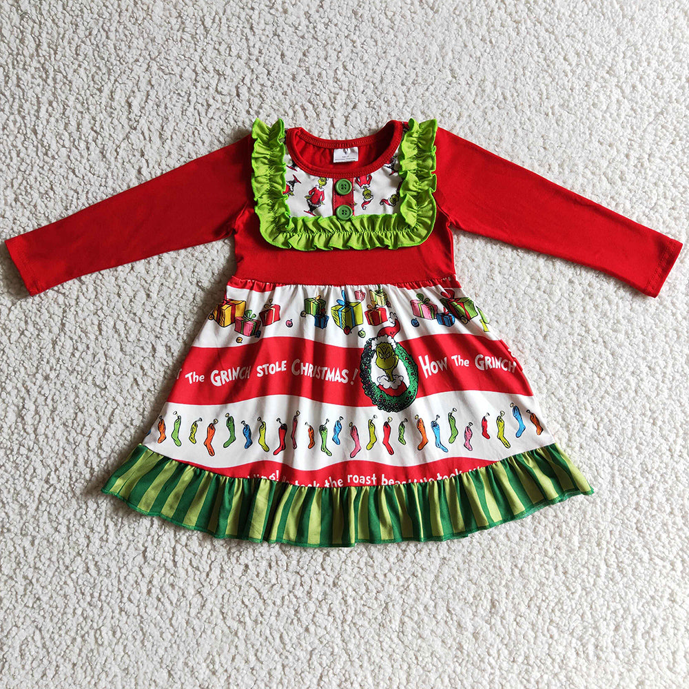 Christmas Toddler Girls Dress Long Sleeve Boutique Baby Girl Dresses GLD0097