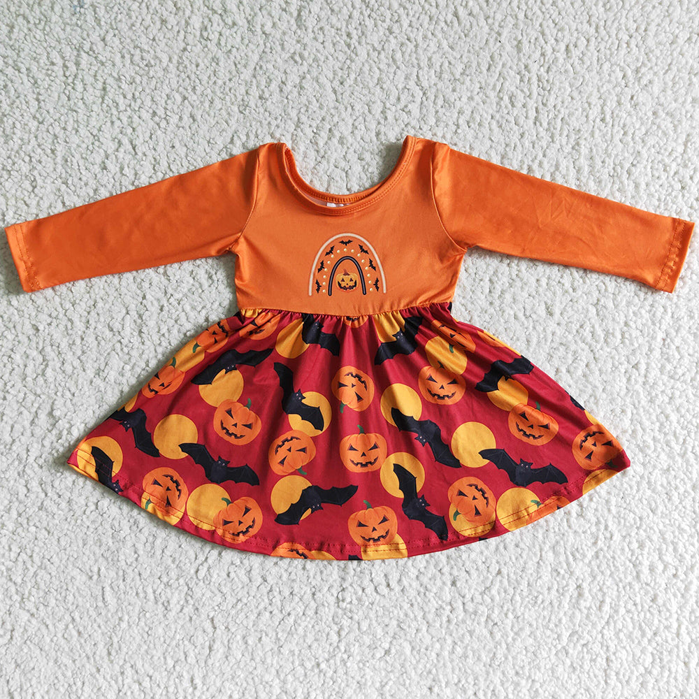 Cute Toddler Baby Girl Dress Long Sleeve Halloween Pumpkin Girls Dress GLD0016
