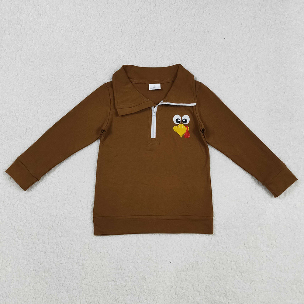 Embroidery Baby Boys Clothes Tops Brown Thanksgiving Zipper Turkey Polo Shirts Tops BT1265 9.1