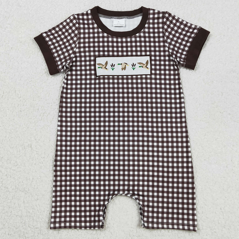 Embroidery Baby Boys Rompers Brown Plaid Short Sleeves Ducks Rompers SR3164 9.1
