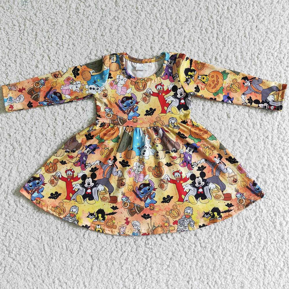 Fall Baby Girl Twirl Dress Cartoon Print Cute Girls Halloween Dresses GLD0015