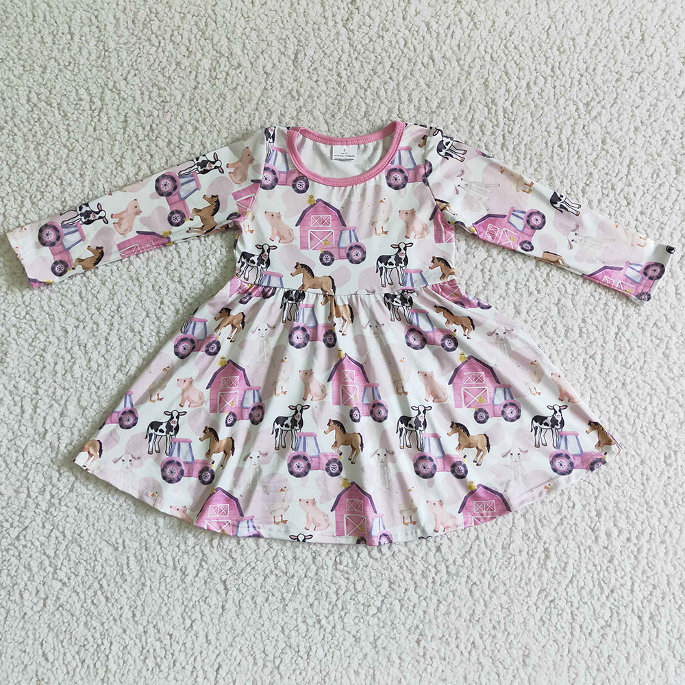Farm Print Cute Girls Dress Long Sleeve Twirl Dresses GLD0030