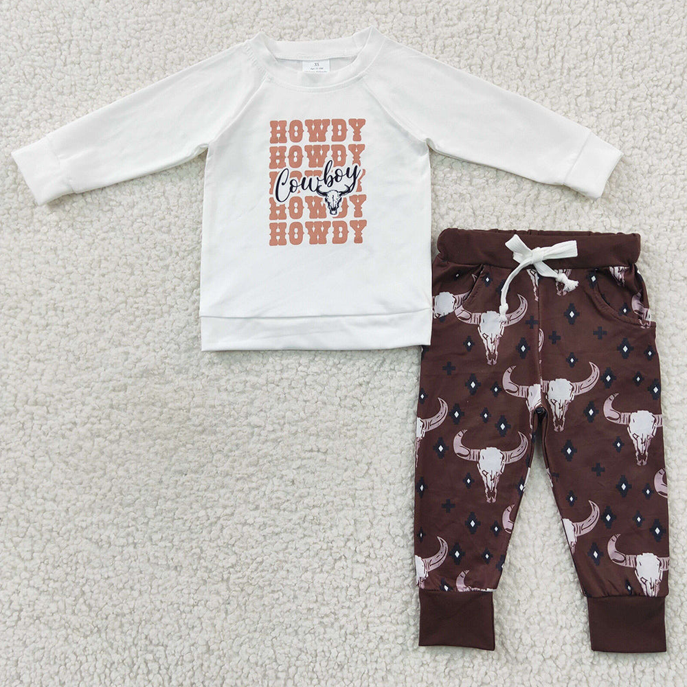Fashion Boys Clothes Howdy Cow Print Boutique Kids Outfits BLP0249