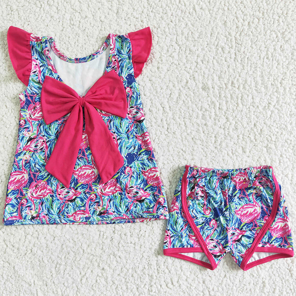 Fashion Kids Girls Clothes Set Flamingo Print Cute Baby Girl Summer Girls Sister Outfits GSSO0101