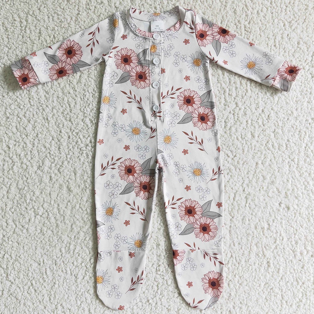 Flower Print Cute Infant Girls Romper Footie Jumpsuit LR0113