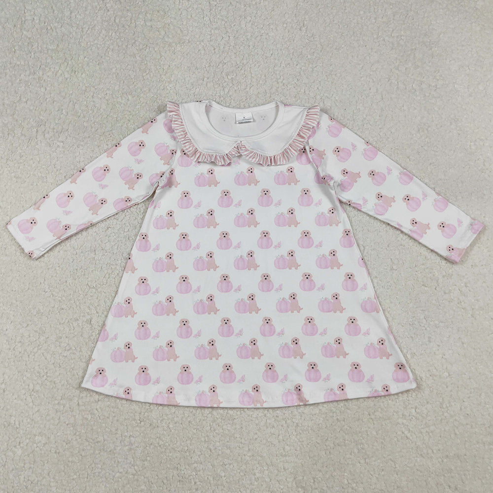 Halloween Baby Girls Dress Pink Dog Pumpkins Fall Knee Length Dresses GLD1157 10.2