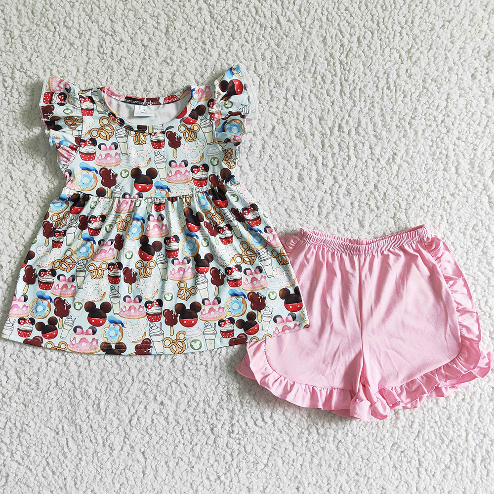 Hot Sale Baby Girls Clothes Set Cute Cartoon Print Girls Summer Clothing Wholesale C8-12