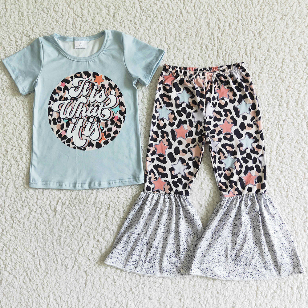 Hot Sale Toddler Girls Clothes Bell Bottom Outfits Cute Girls Clothing Set GSPO0002