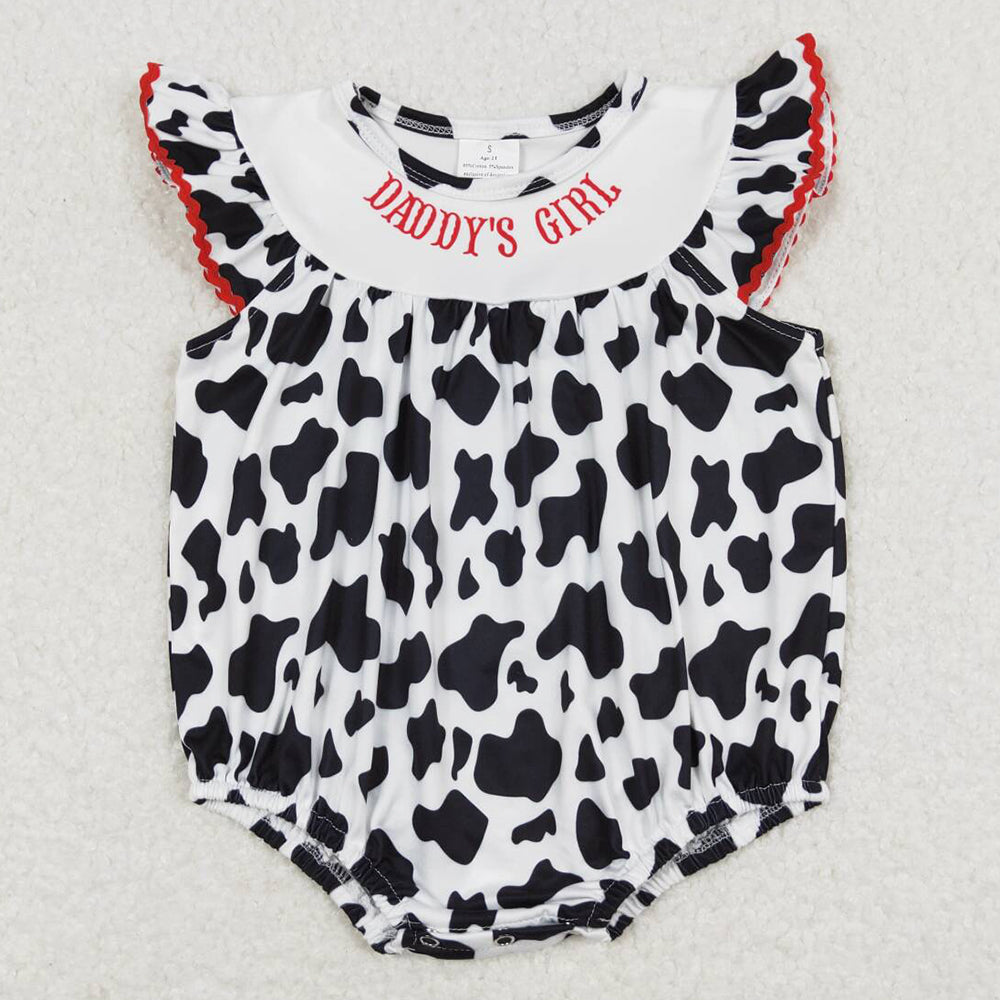 Infant Baby Girls Rompers Cow Daddy`s Girl Embroidery Boutique Rompers SR1146