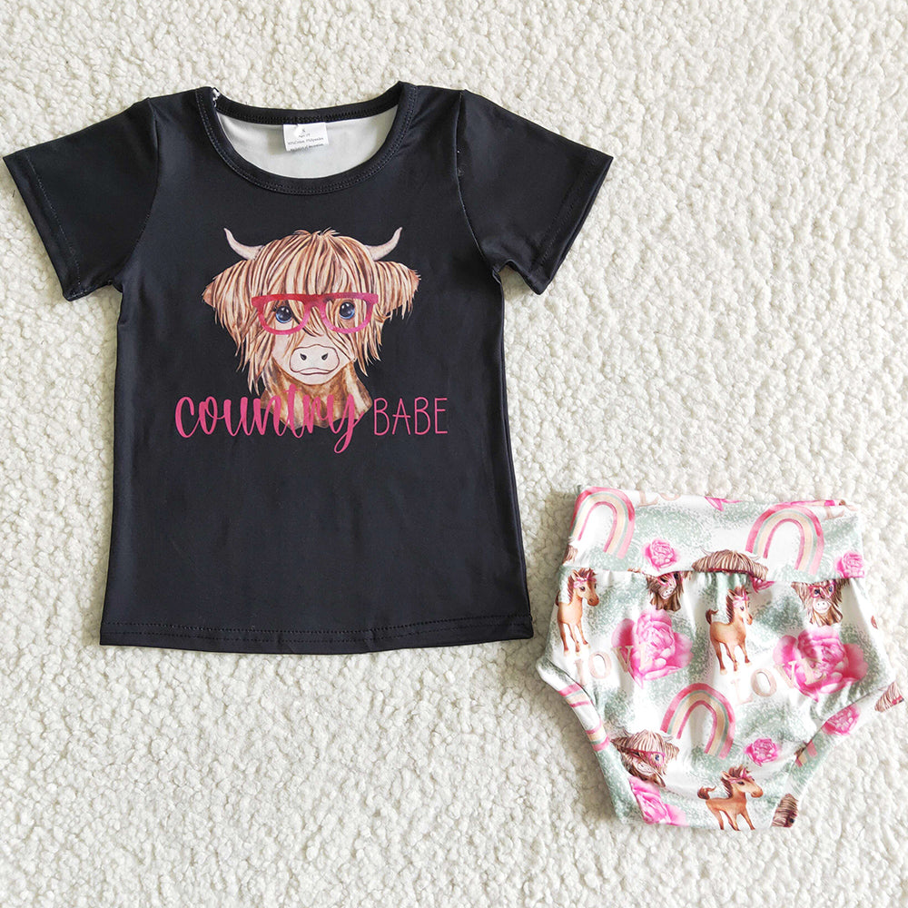 Kids Clothes Girls Bummies Set Cow Printed Toddler Baby Girls Clothes Outfits C0-29