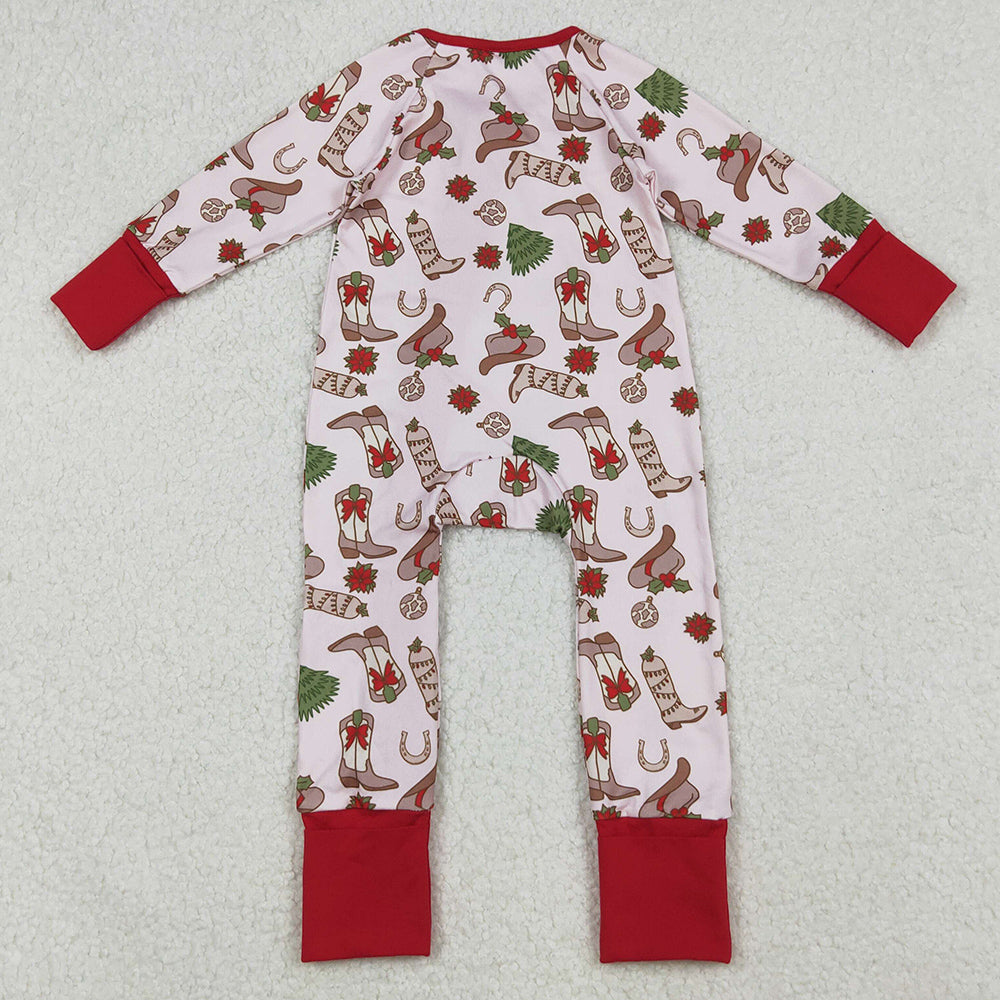Baby Girls Holly Boots Christmas Zipper Footie Rompers LR2584 9.13
