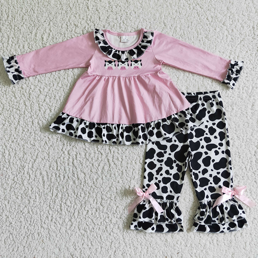 New Design Baby Girl Clothes Cow Print Cute Kids Outfits Pink GLP0165