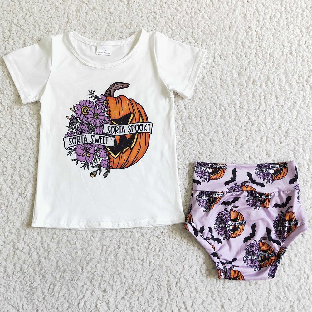 New Design Baby Girls Clothes Pumpkin Bummie Set Halloween Outfits GBO0062