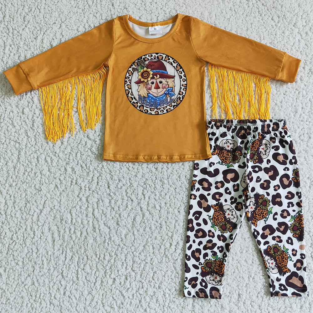 New Fashion Baby Girls Clothes Tassel Design Scarecrow Print Boutique Girls Outfits GLP0167