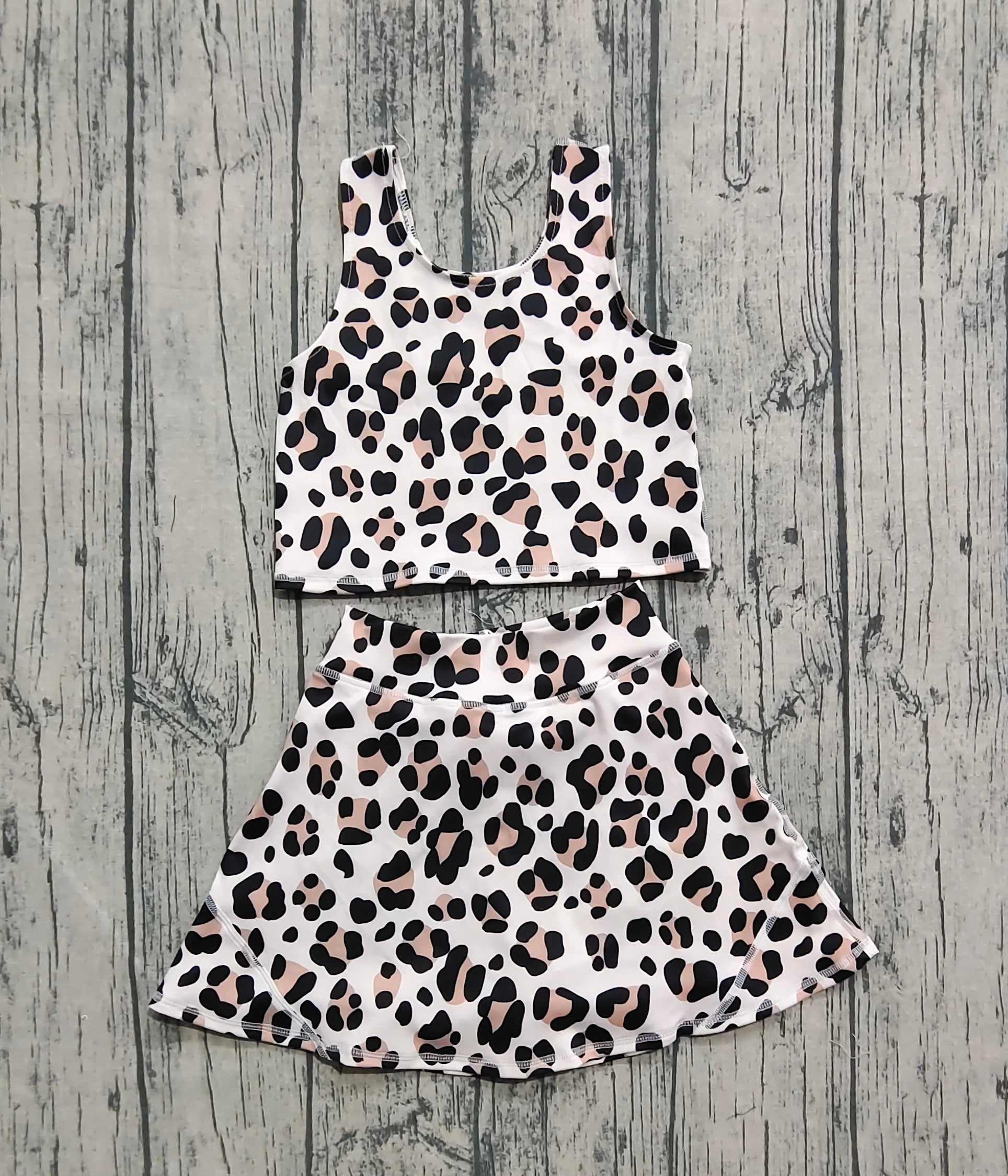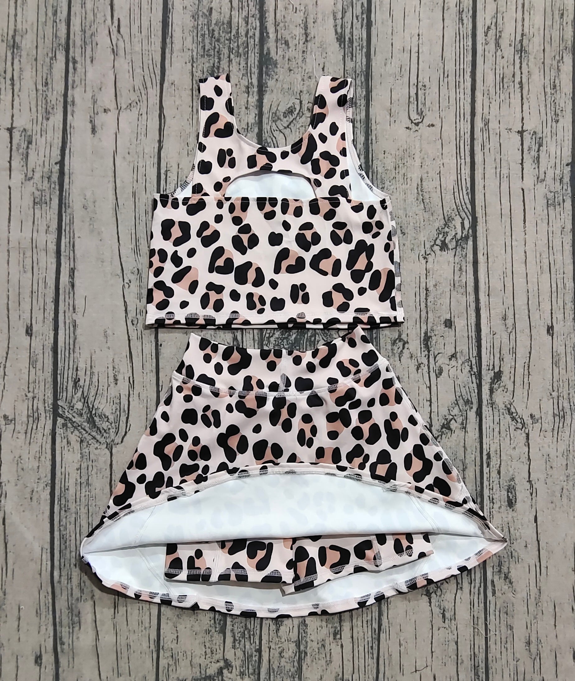 Preorder Baby Girls Clothes Sleeveless Leopard Top Skort Yoga Set GSD2327 8.2