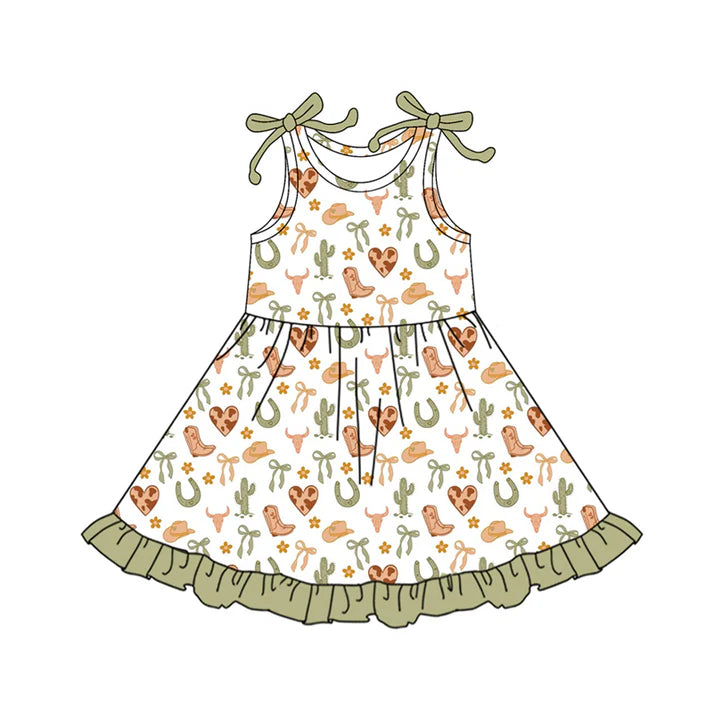 Preorder (moq 5)Baby Girls Bows Strap Boots Bows Ruffle Knee Length Dresses 6.2