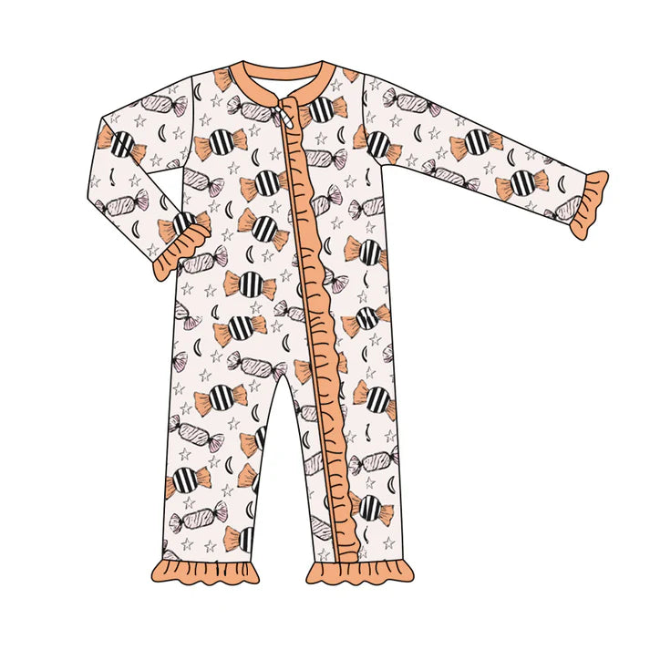 Preorder (moq 5)Baby Girls Yellow Long Ruffle Sleeves Candy Stars Zipper Pant Rompers 6.13