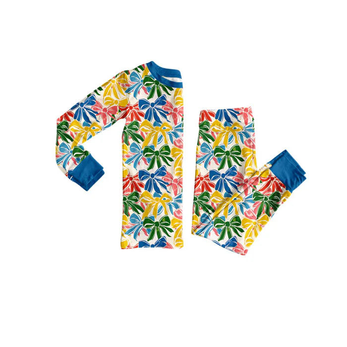 Preorder(moq 8)Baby Girls Colorful Bows Plaid Top Pant Pajamas Sets 9.29