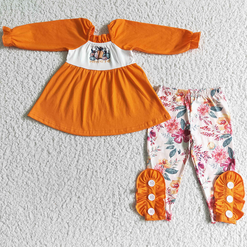 Pumpkin Print Girls Clothing Halloween Kids Outfits GLP0024