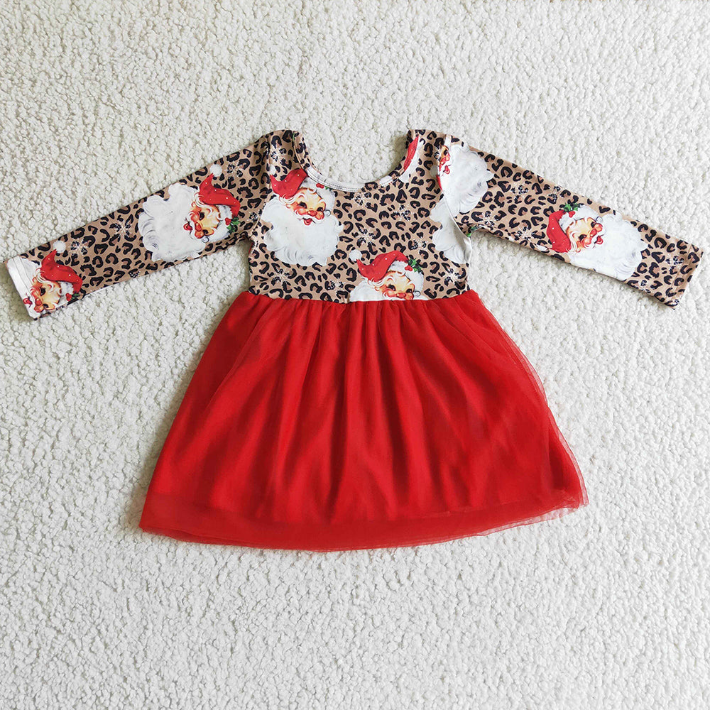 Santa Claus Print Girls Dress Christmas Toddler Baby Girl Long Sleeve Dresses GLD0132
