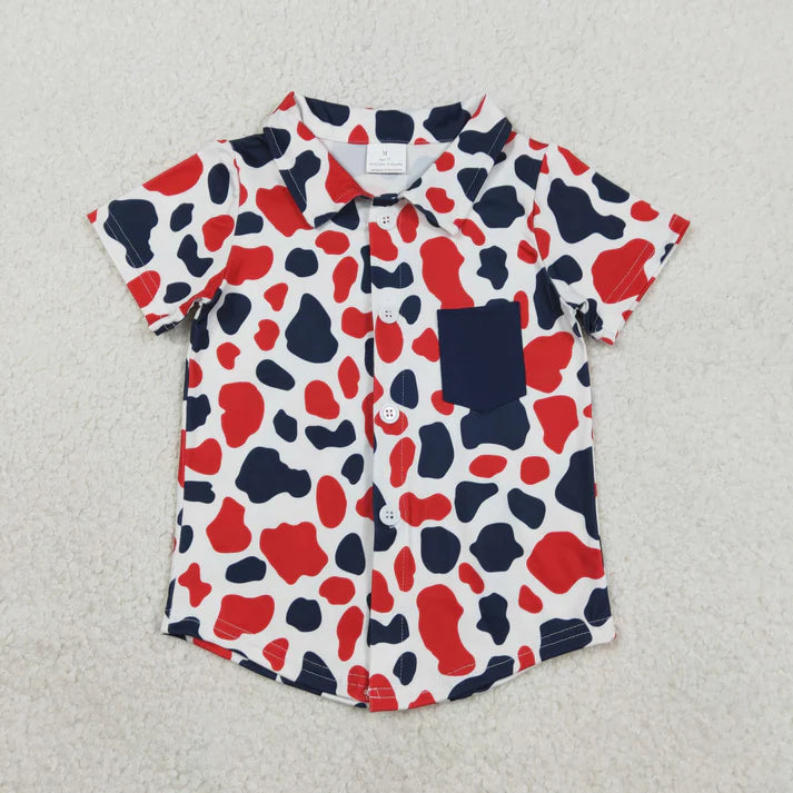 Sibling Baby Boys Red Blue Cow Print Button Tops Shorts 4th of July Clothes Set Rompers