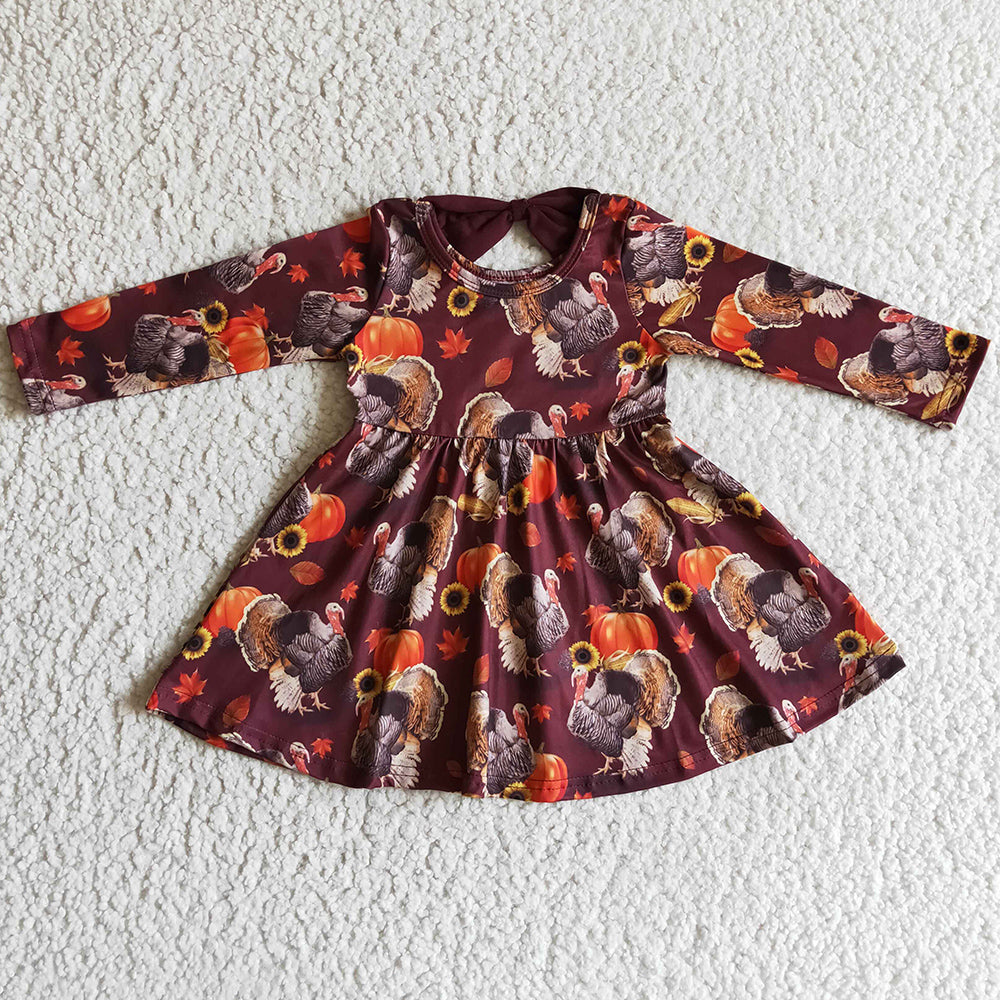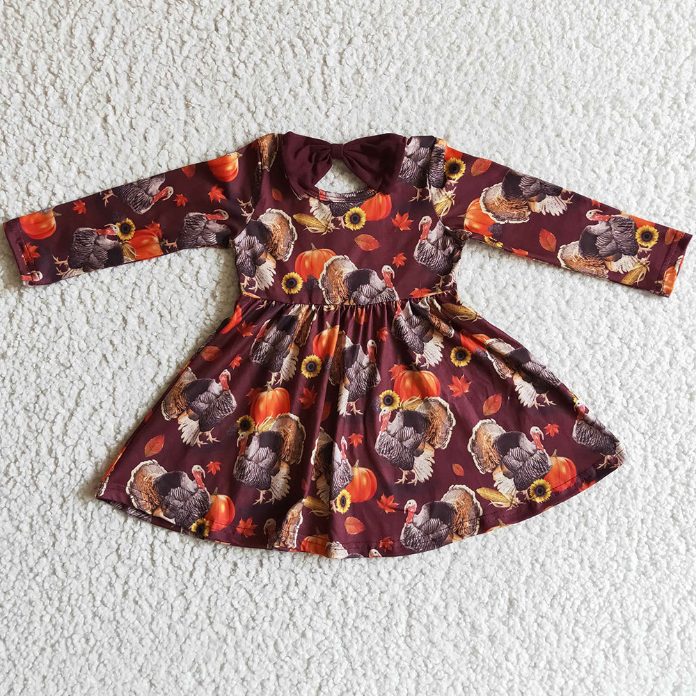 THanksgiving Boutique Girls Dress Turkey Print Pumpking Dress GLD0053