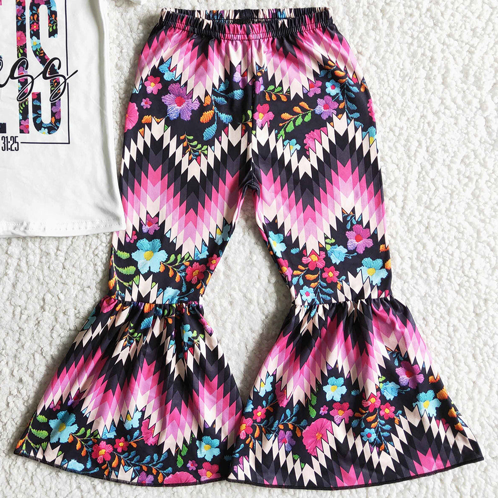 Toddler Girls Clothes Short Sleeve Bell Bottom Pants Boutique Baby Girl Clothes Set GSPO0041