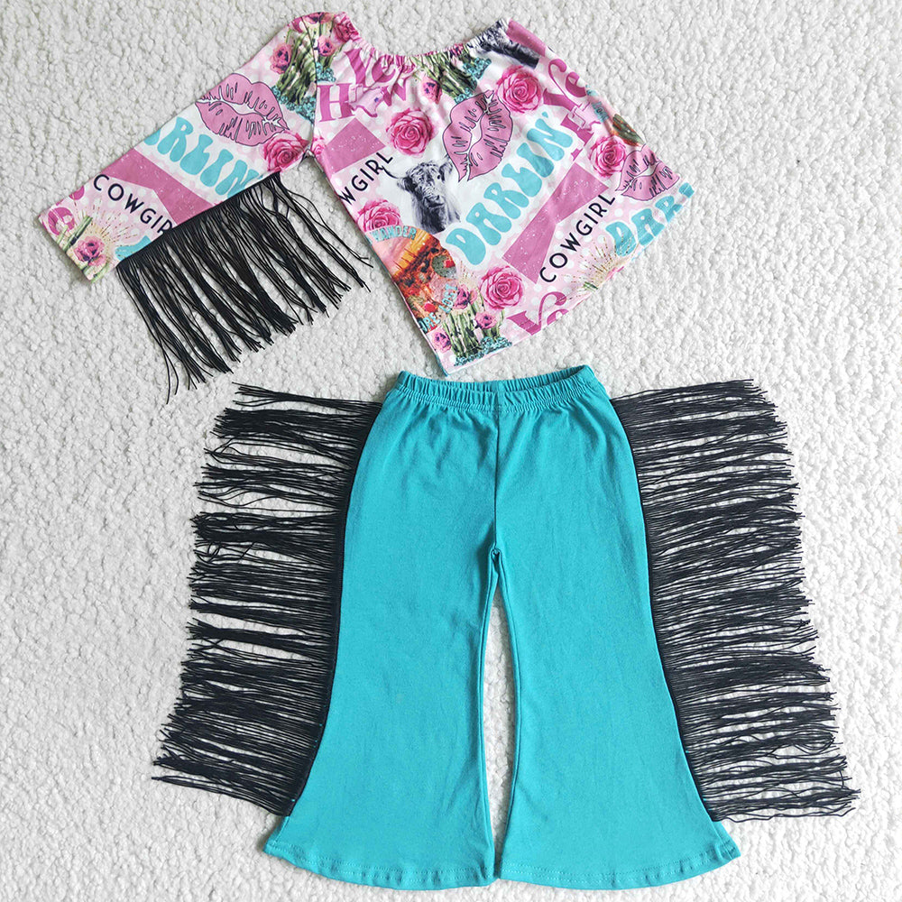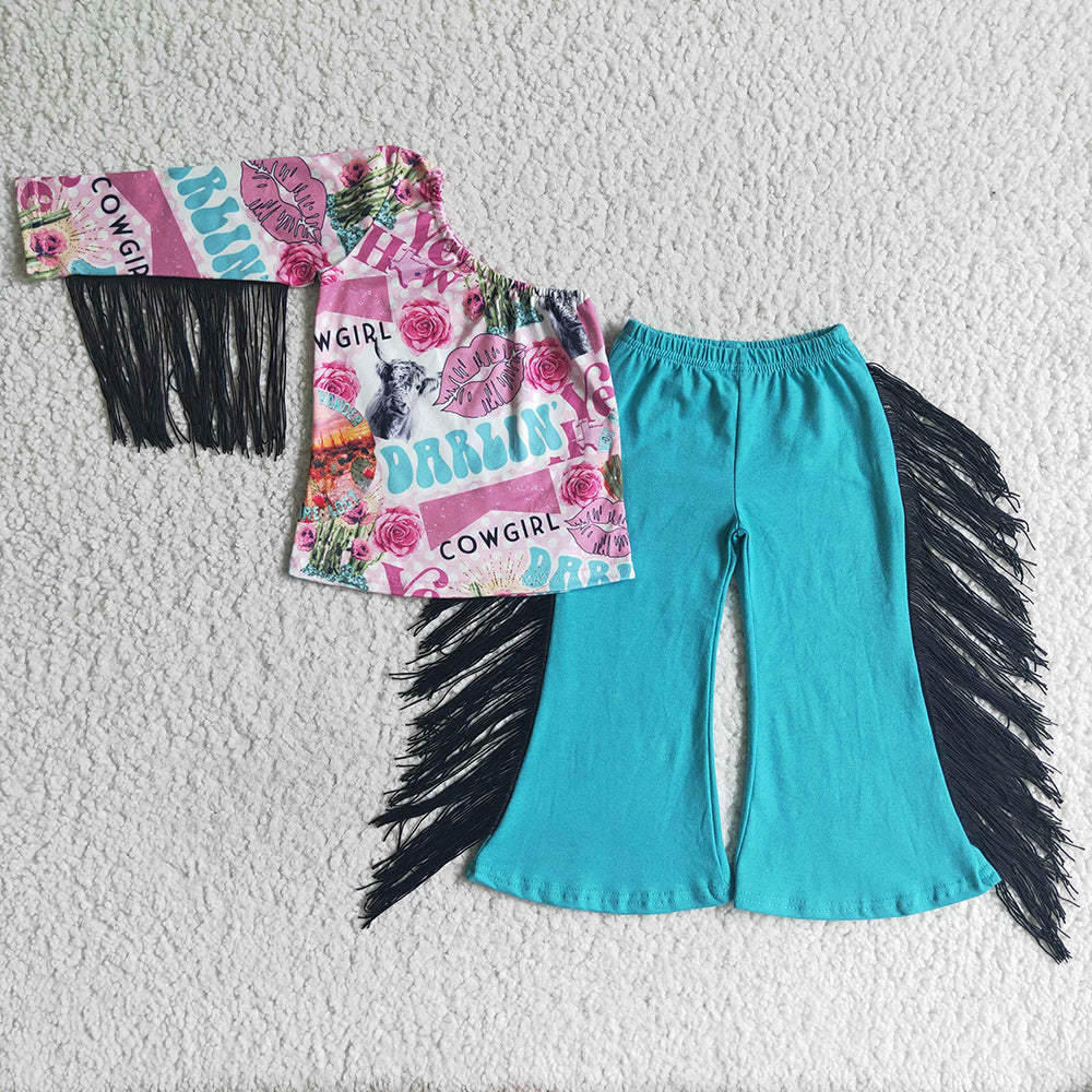 Western Style Fashion Girls Clothing Tassel Design Baby Kids Clothing Set GSPO0141