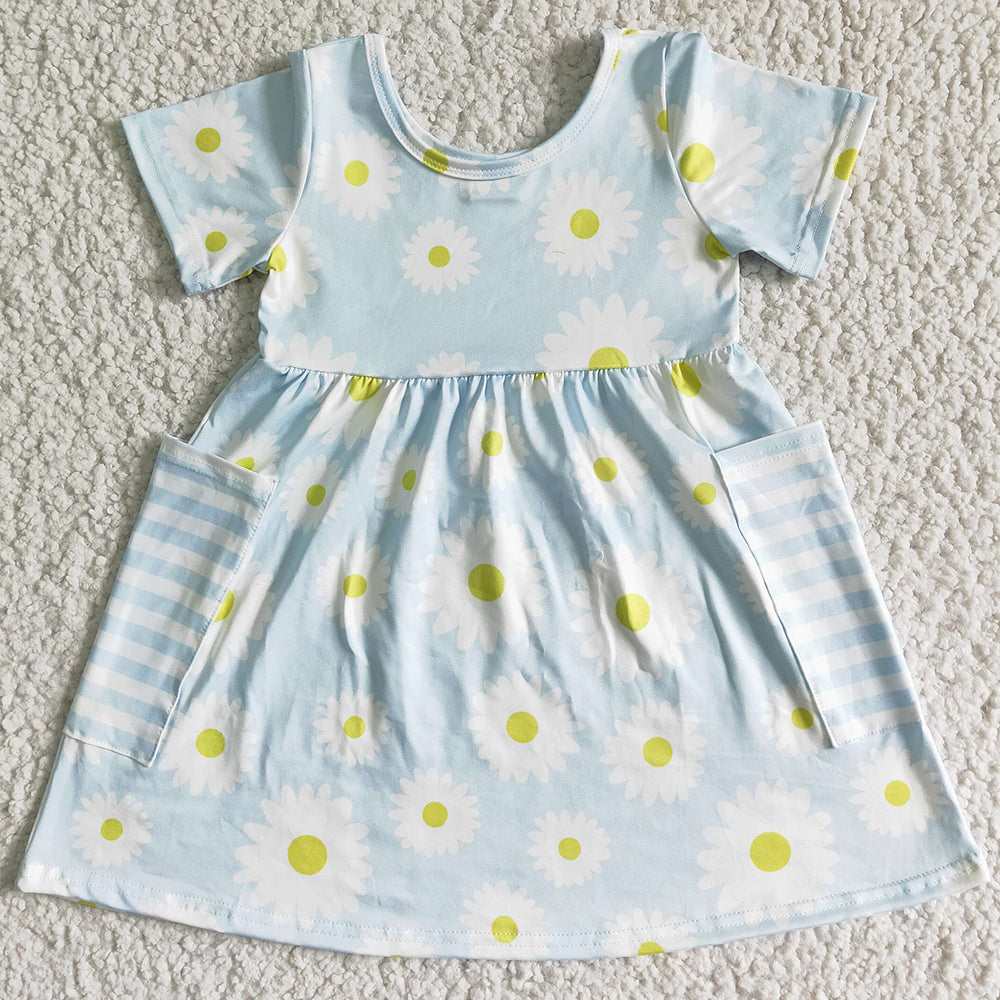 Wholesale Baby Girls Dress Bee Flower Summer Girls Dresses with Pocket GSD0096